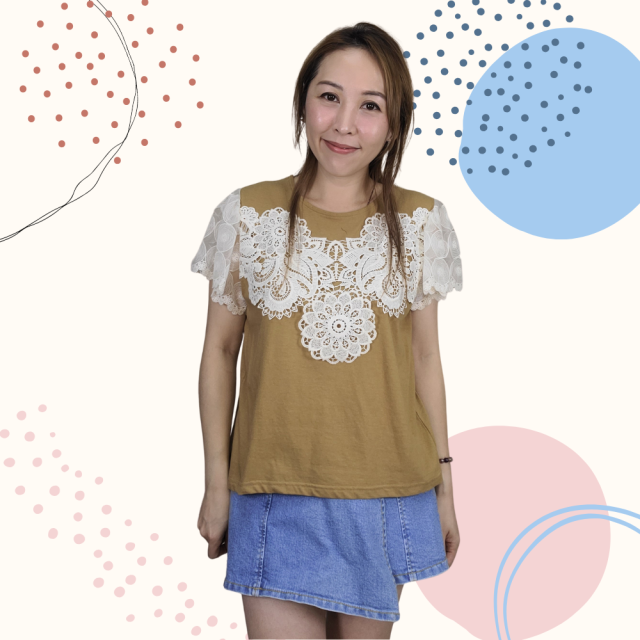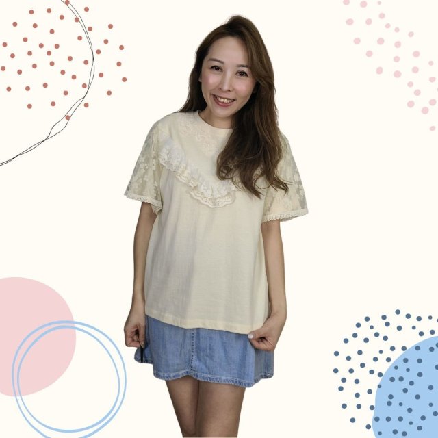 韓國製 TOP Lace 全棉 上衣 2251 米色