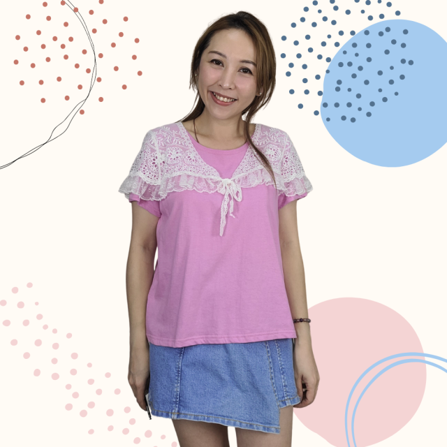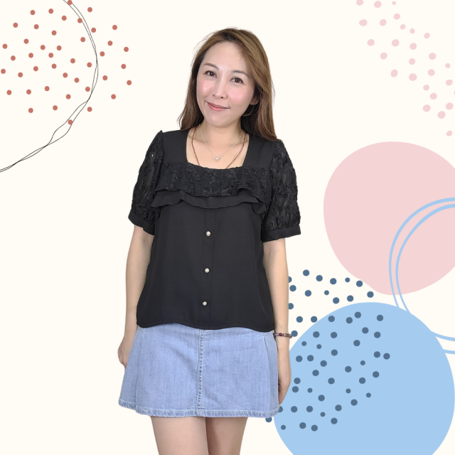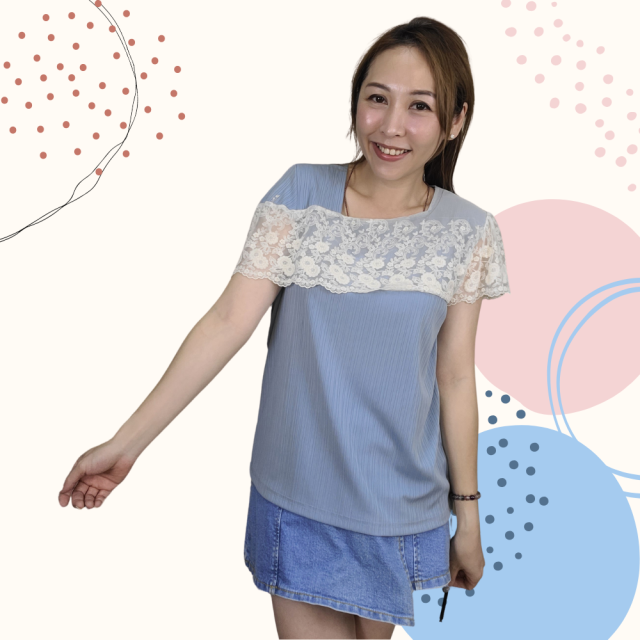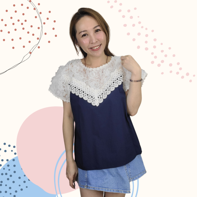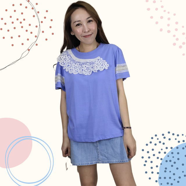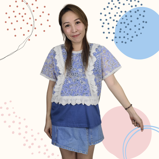 韓國製 TOP 雪紡 Lace 上衣 2252 藍色