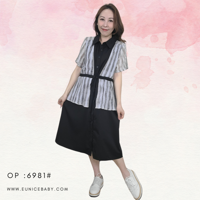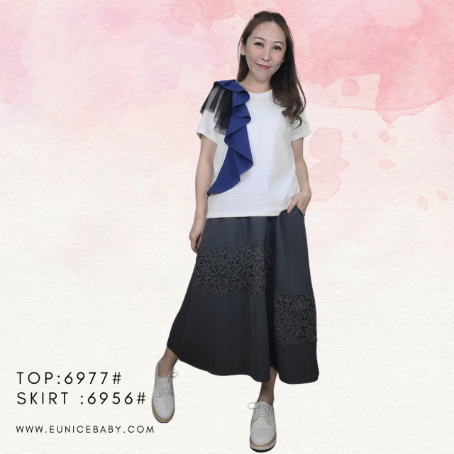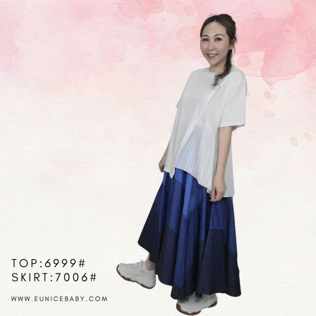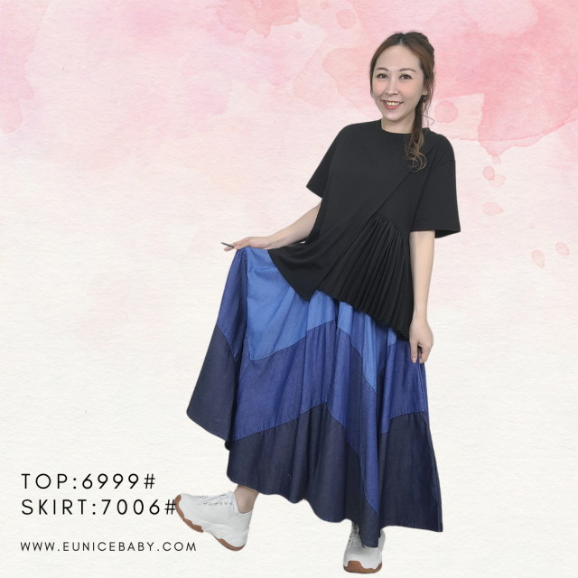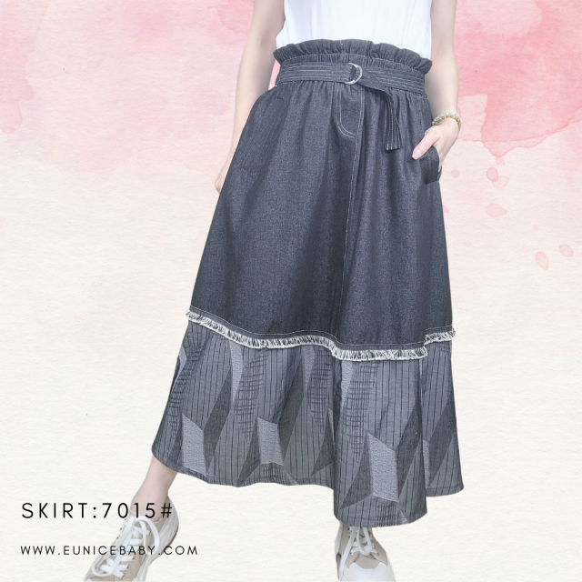 SKIRT 雪紡 拼 牛仔 半身裙 7015# 黑色