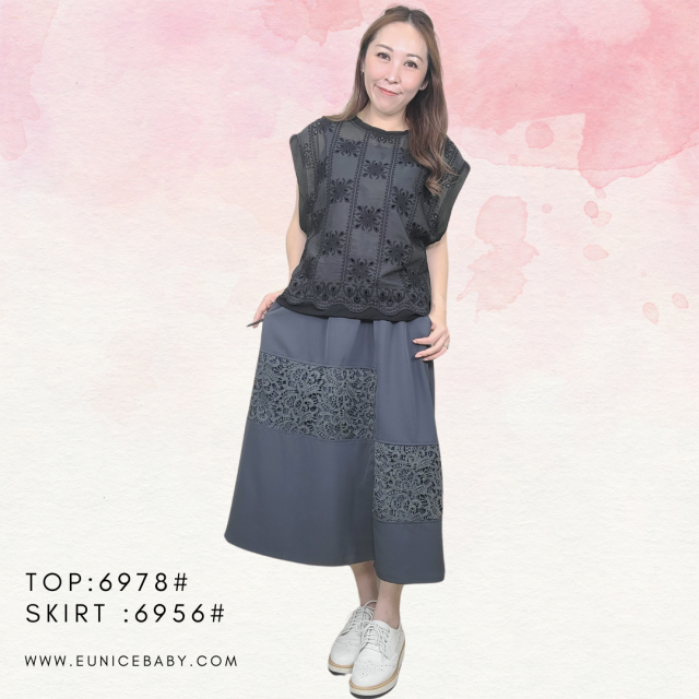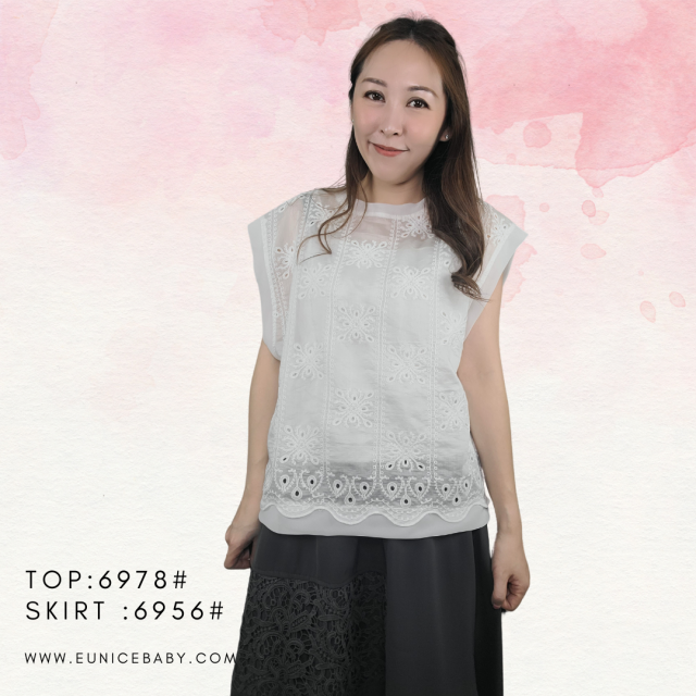 TOP 絲質 刺繡 上衣 6978# 黑色