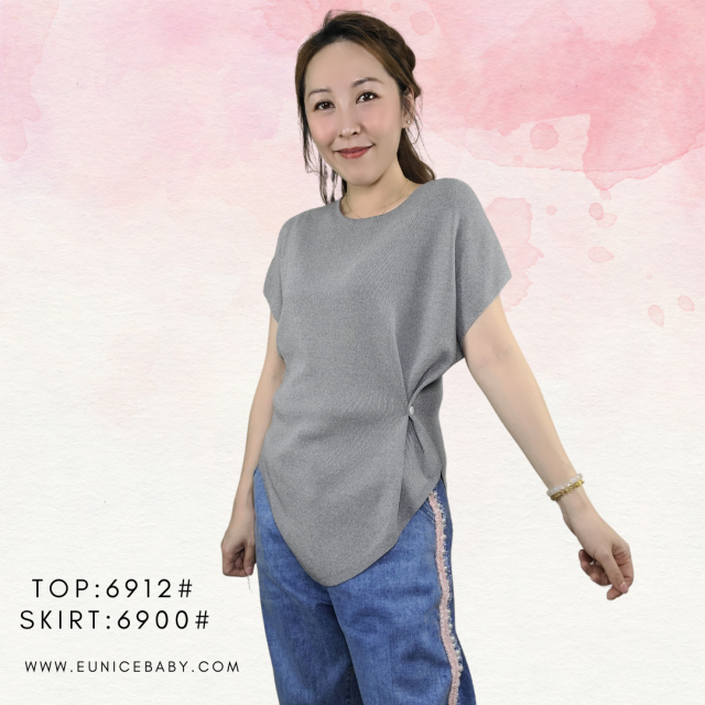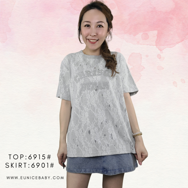 TOP 全棉 蕾絲 上衣 6915# 灰色