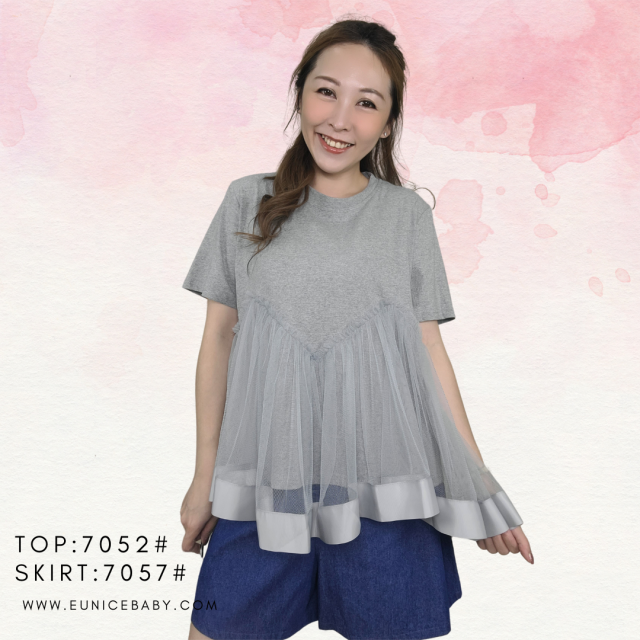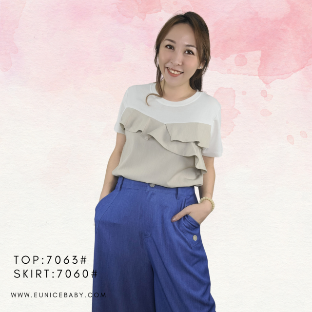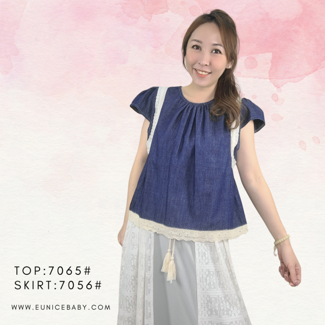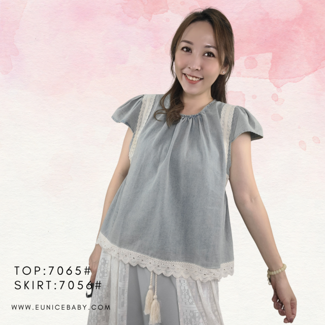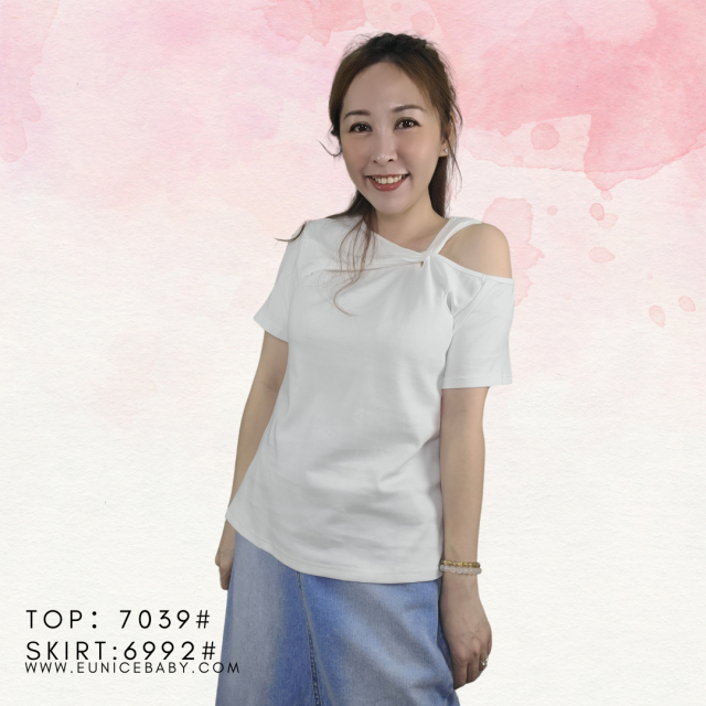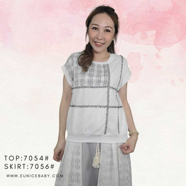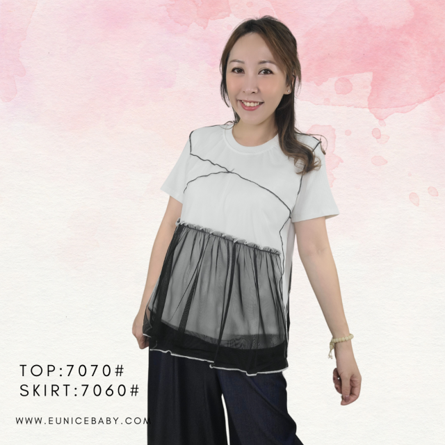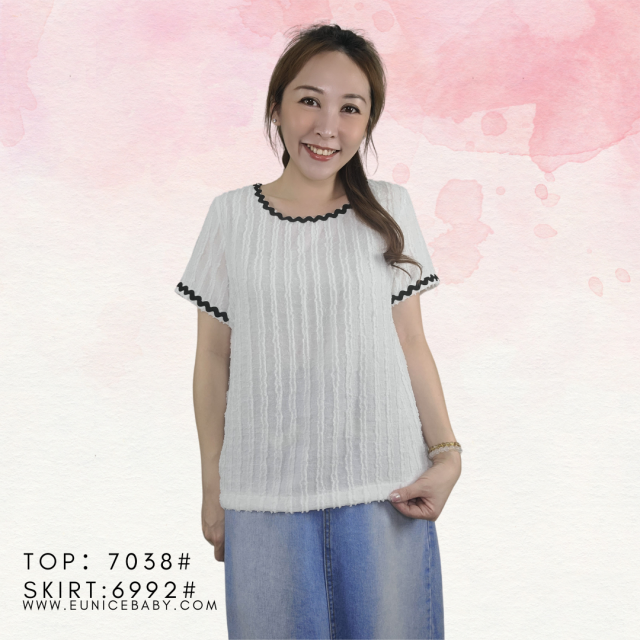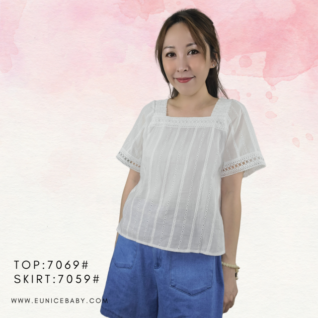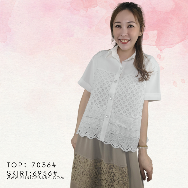 TOP 全棉 拼紗 上衣 7070 # 白色