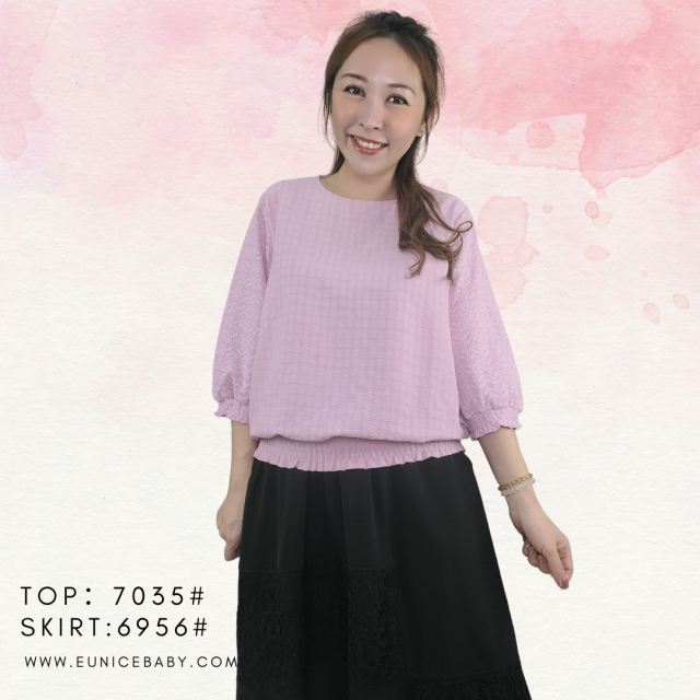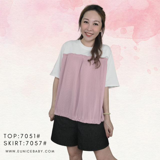 TOP 全棉 拼百摺 上衣 7051# 粉色