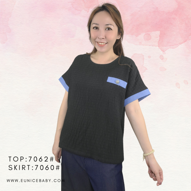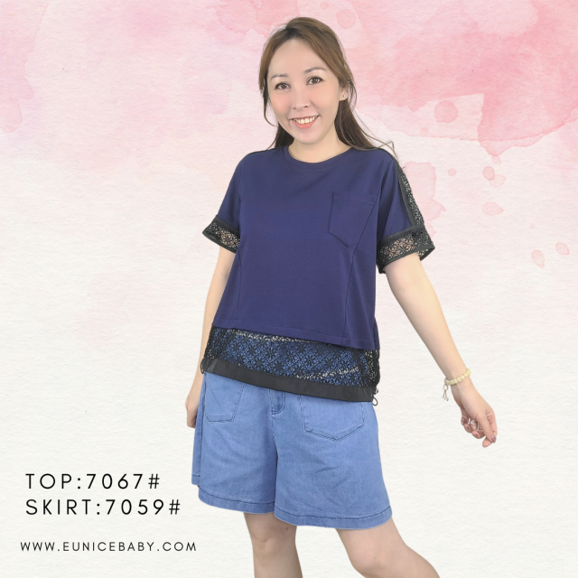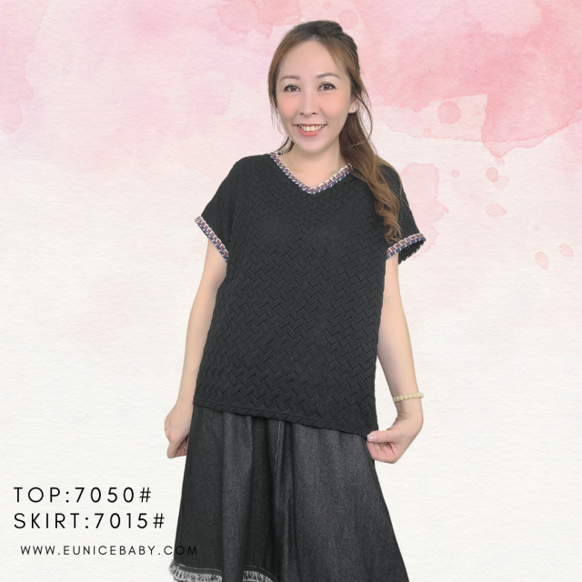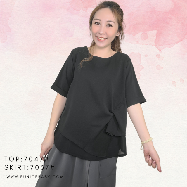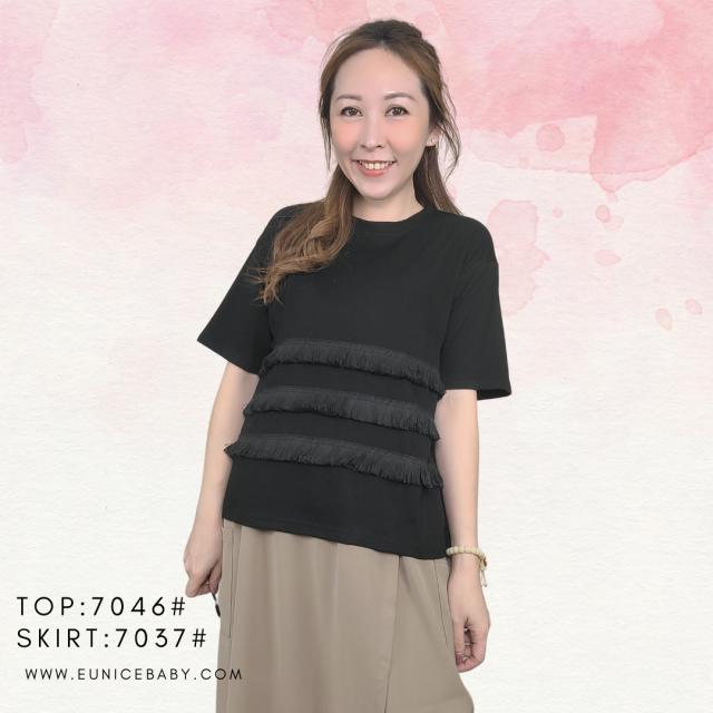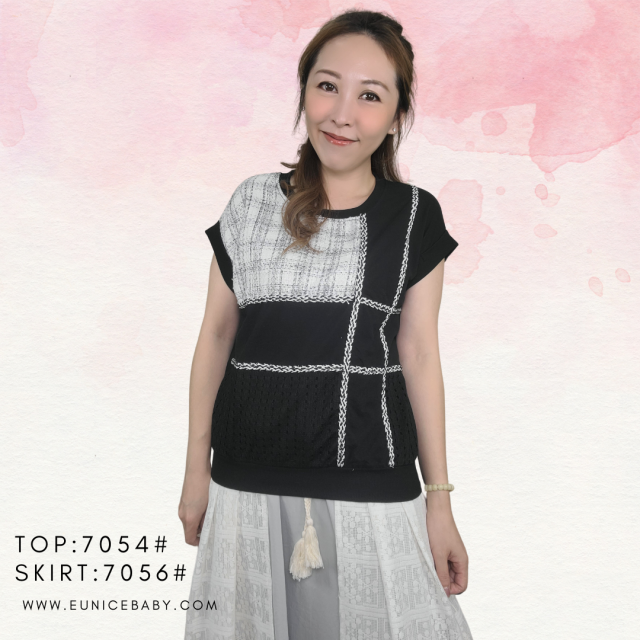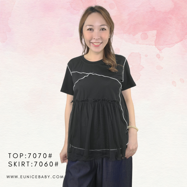 TOP 全棉 拼紗 上衣 7070 # 黑色