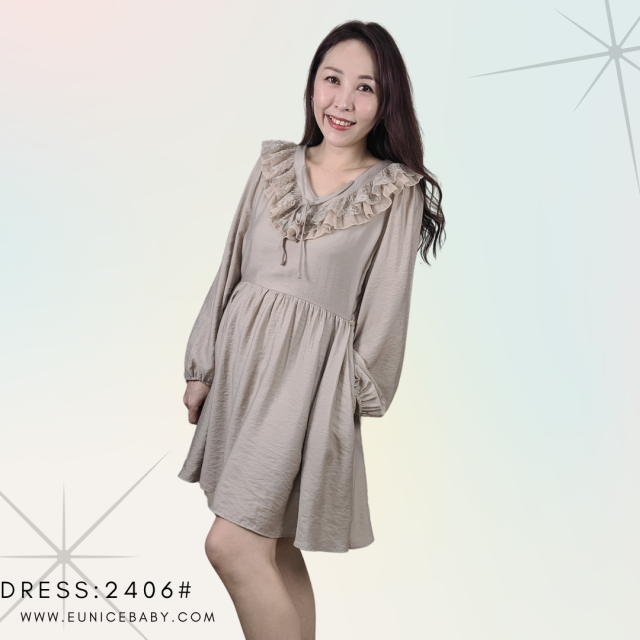 韓國製 DRESS OP 皺摺布 連身裙 2406 杏色