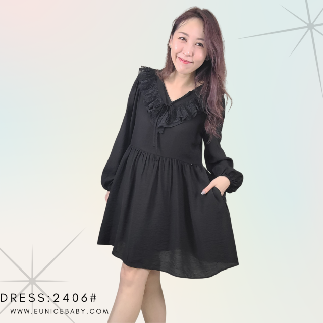 韓國製 DRESS OP 皺摺布 連身裙 2406 黑色