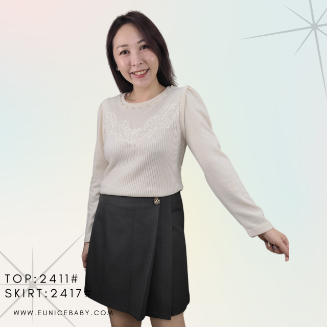 韓國製 TOP 針織 上衣 2411 米白色
