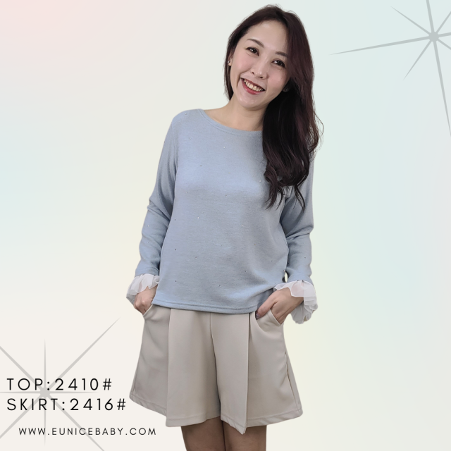 韓國製 TOP 針織 上衣 2410 粉藍色