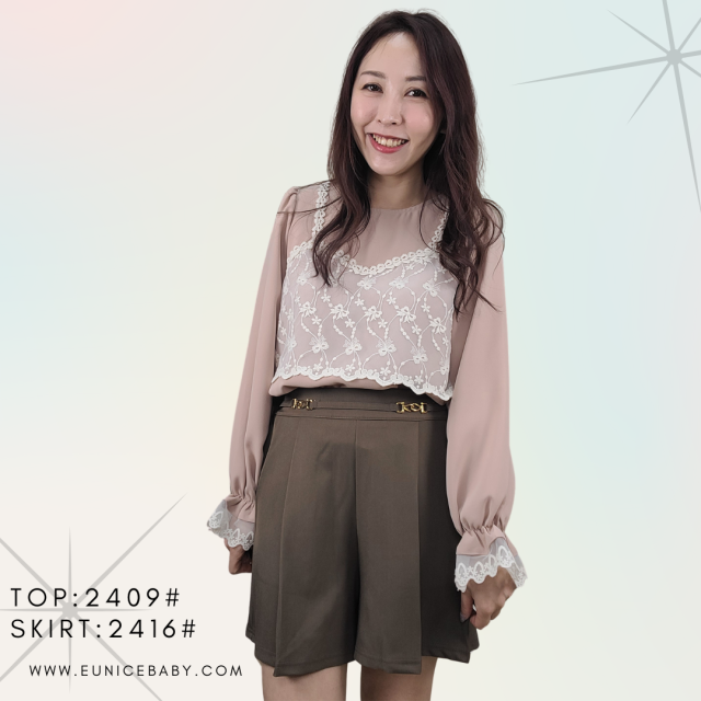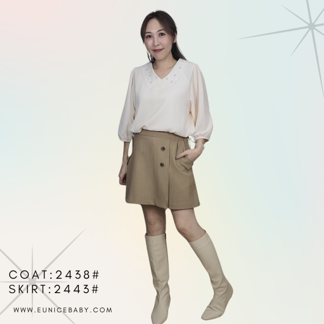 韓國製 Shirt 西裙棉 免燙 裙褲 2416 米杏色