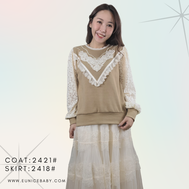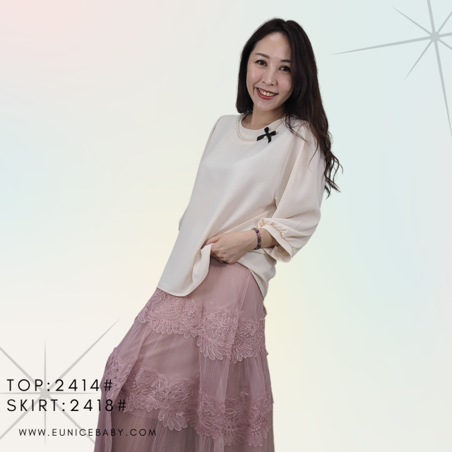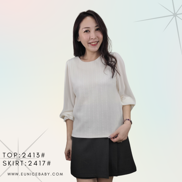 韓國製 TOP 提花 全棉 上衣 2413 米白色
