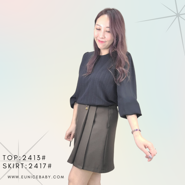韓國製 Shirt 西裙棉 免燙 裙褲 2417 黑色