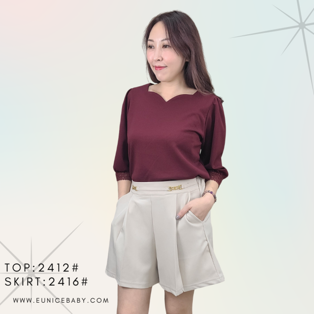 韓國製 TOP 全棉 上衣 2412 棗紅色