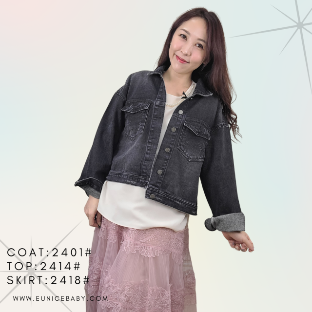 韓國製 COAT 牛仔褸 2401 黑色