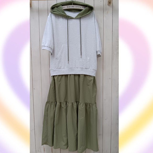 韓國製 連身裙OP 全棉上衣 裙身涼感風褸料 2286 白綠色