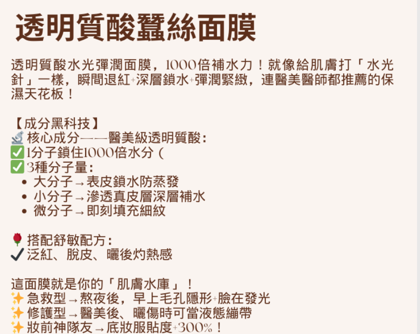📌透明質酸蠶絲面膜💢補水恩物
