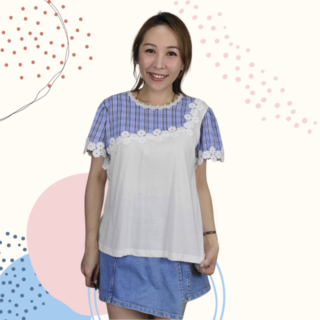 韓國製 TOP 雪紡 Lace 上衣 2252 藍色