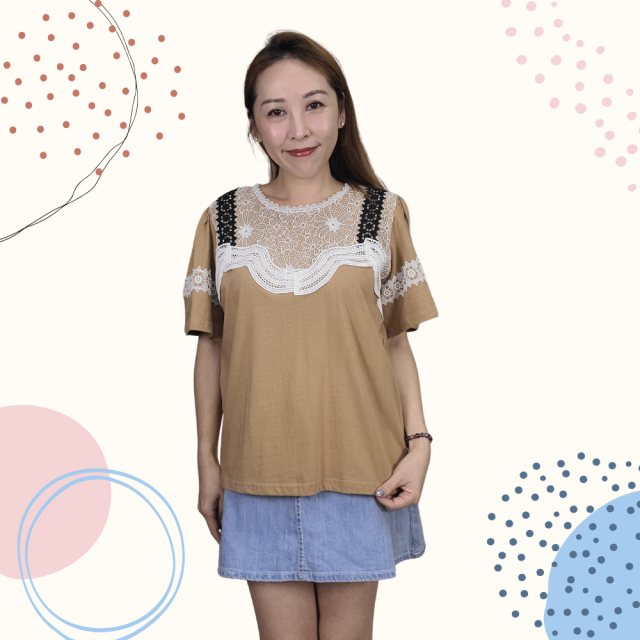 韓國製 TOP Lace 全棉 上衣 2251 米色